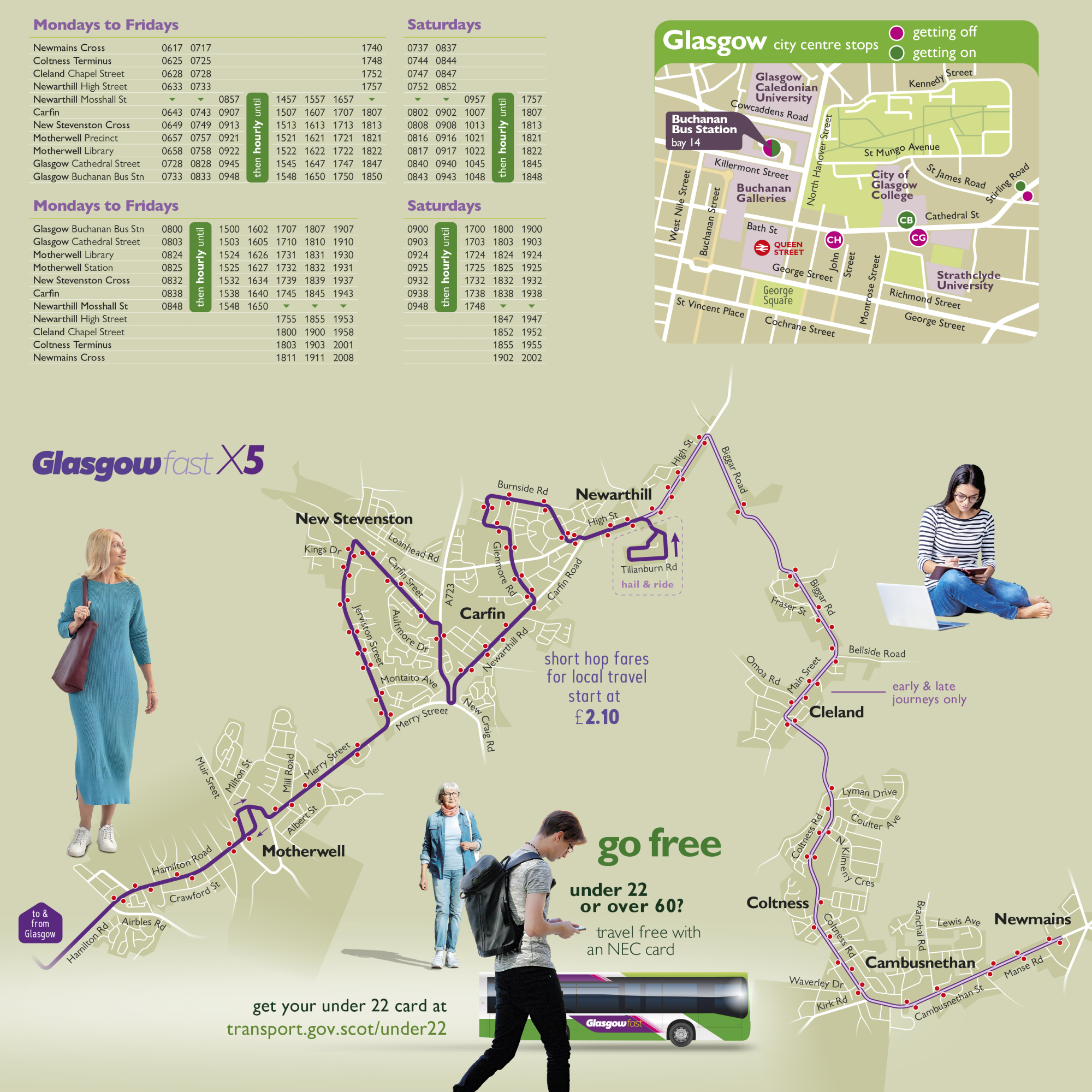 NEW Glasgow Fast X5 will be introduced, providing a direct service from Newarthill, Carfin, New Stevenston and Motherwell to Glasgow City Centre via the M74 and M8 motorways. The route will operate hourly on Mondays to Saturdays, and at peak times will extend to serve Cleland, Coltness and Newmains.
