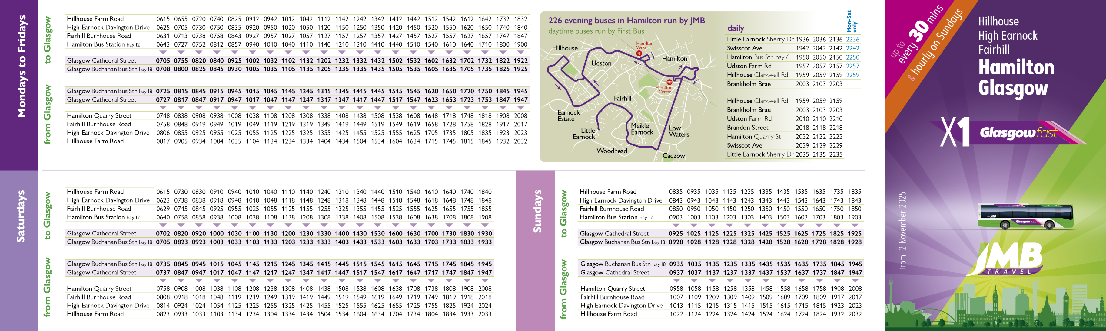 Changes to Services X1 & 226 from Sunday 2nd November 2025