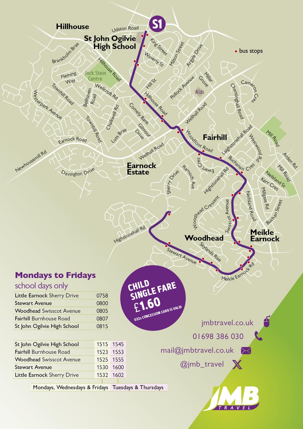 From the 14th August, we will be introducing a new school days only service, S1, to help St John Ogilvie School pupils living in Torrhead and Fairhill travel to and from school.