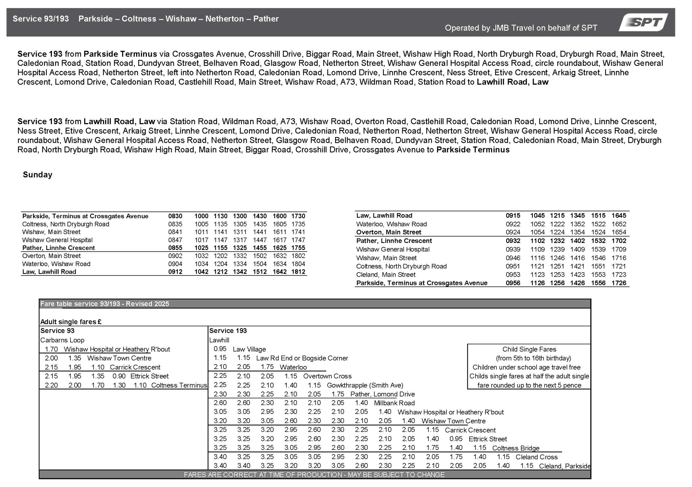 The 193 will be extended from Pather to Lawhill, via Overtown, Waterloo and Bogside. The frequency is reduced to every 90-minutes and the timetable is curtailed to finish earlier in the evening.